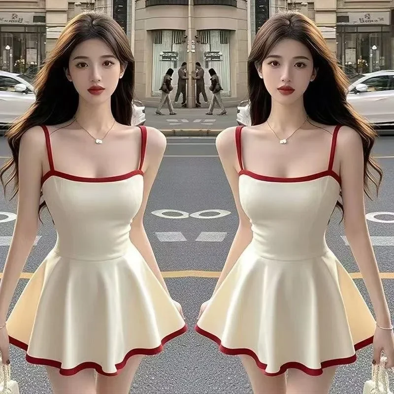 �� French Style Retro Design : Embrace retro elegance with this French-style dress, featuring a timeless square collar and color contrast details.